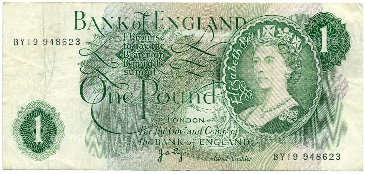 Банкнота 1 фунт 1970 года Великобритания (Банк Англии) (Артикул: K11-122075): подробные характеристики, качественные фотографии в высоком разрешении, низкая цена.