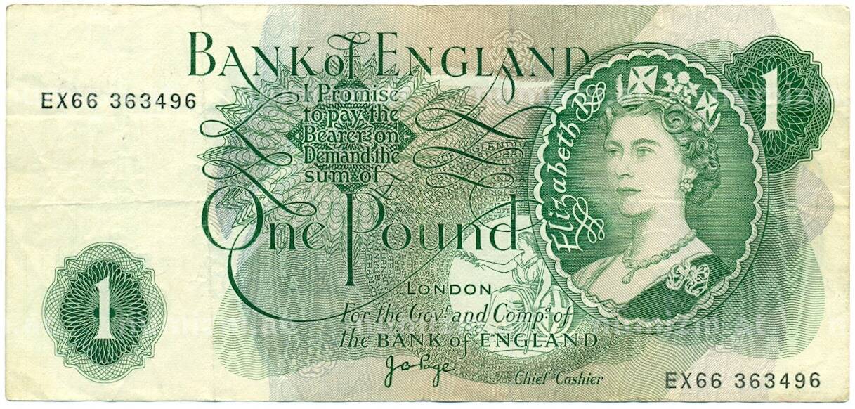 Банкнота 1 фунт 1970 года Великобритания (Банк Англии) (Артикул: K11-122083): подробные характеристики, качественные фотографии в высоком разрешении, низкая цена.