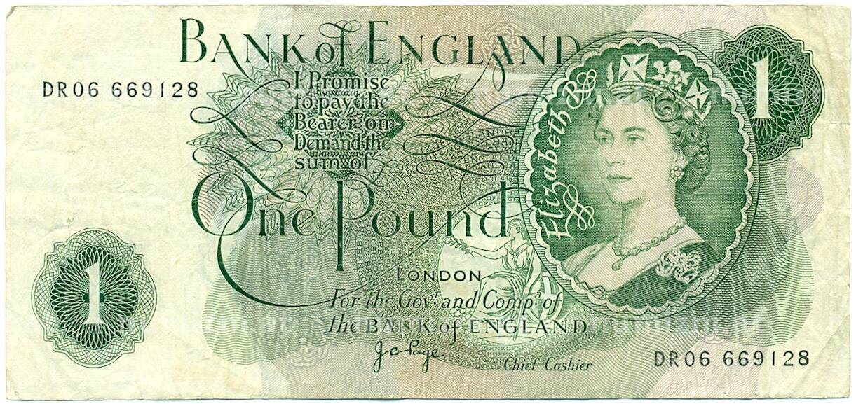 Банкнота 1 фунт 1970 года Великобритания (Банк Англии) (Артикул: K11-122086): подробные характеристики, качественные фотографии в высоком разрешении, низкая цена.