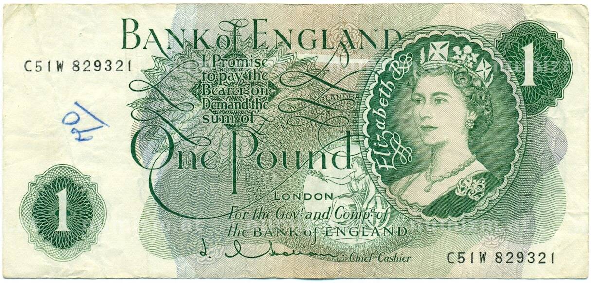 Банкнота 1 фунт 1962 года Великобритания (Банк Англии) (Артикул: K11-122130): подробные характеристики, качественные фотографии в высоком разрешении, низкая цена.