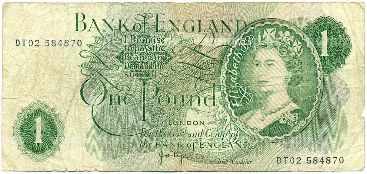 Банкнота 1 фунт 1970 года Великобритания (Банк Англии) (Артикул: K11-122261): подробные характеристики, качественные фотографии в высоком разрешении, низкая цена.
