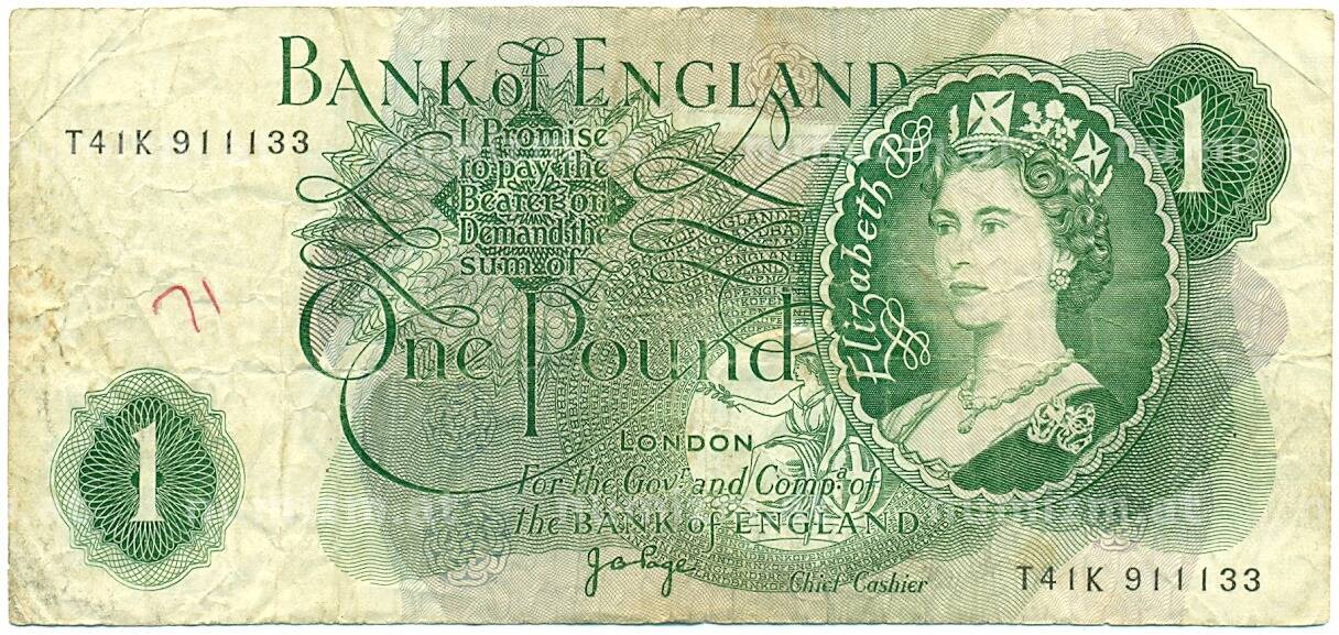 Банкнота 1 фунт 1970 года Великобритания (Банк Англии) (Артикул: K11-122266): подробные характеристики, качественные фотографии в высоком разрешении, низкая цена.