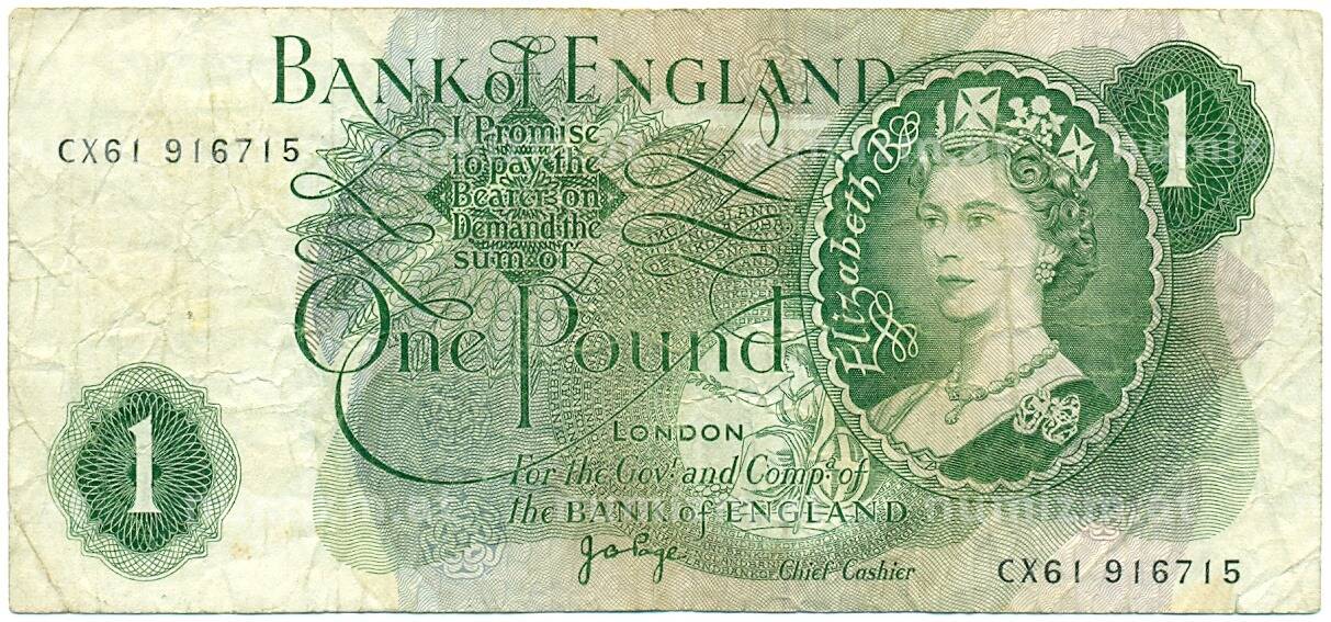 Банкнота 1 фунт 1970 года Великобритания (Банк Англии) (Артикул: K11-122277): подробные характеристики, качественные фотографии в высоком разрешении, низкая цена.