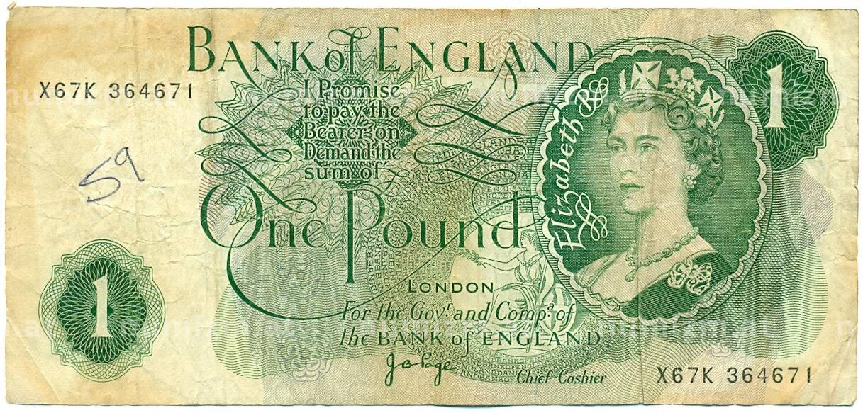 Банкнота 1 фунт 1970 года Великобритания (Банк Англии) (Артикул: K11-122311): подробные характеристики, качественные фотографии в высоком разрешении, низкая цена.
