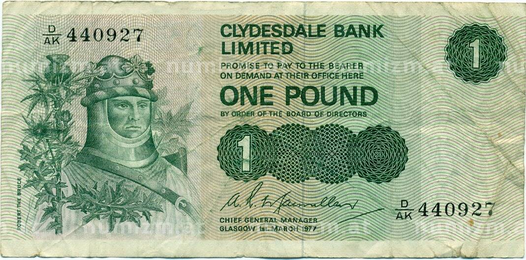 20.01.2025Интернет магазин «Нумизмат» предлагает приобрести 1 фунт 1977 года Великобритания (Банк Шотландии).