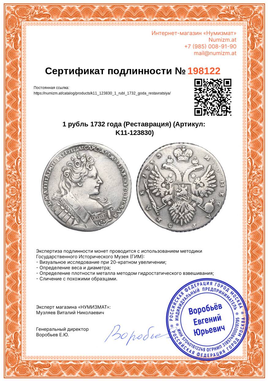 Купить 1 рубль 1732 года (Реставрация) по привлекательной цене можно в нашем интернет-магазине — Вам достаточно оформить заказ на сайте. Все монеты, представленные в каталоге, находятся в наличии на нашем складе.