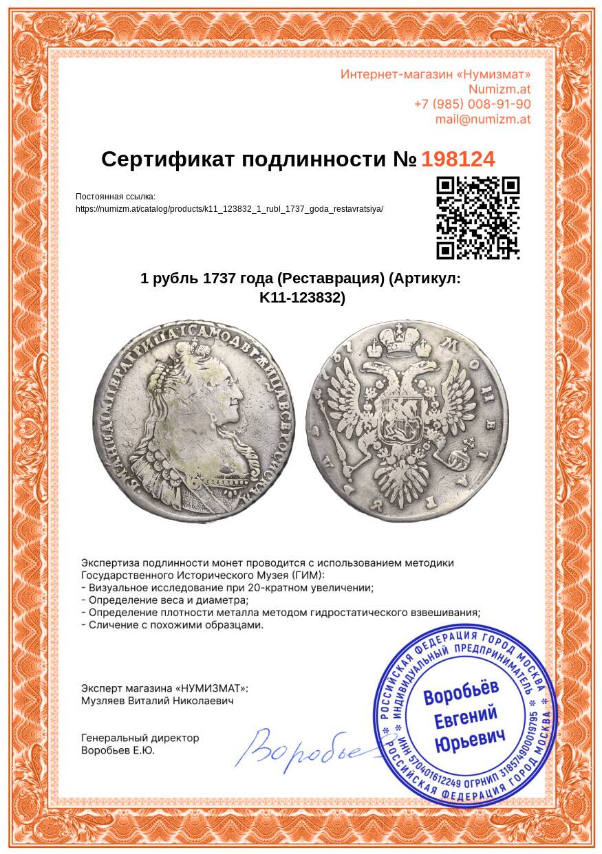 Купить 1 рубль 1737 года (Реставрация) по привлекательной цене можно в нашем интернет-магазине — Вам достаточно оформить заказ на сайте. Все монеты, представленные в каталоге, находятся в наличии на нашем складе.