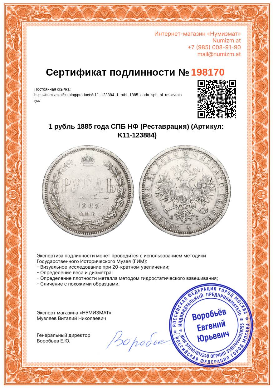 Купить 1 рубль 1885 года СПБ НФ (Реставрация) по привлекательной цене можно в нашем интернет-магазине — Вам достаточно оформить заказ на сайте. Все монеты, представленные в каталоге, находятся в наличии на нашем складе.