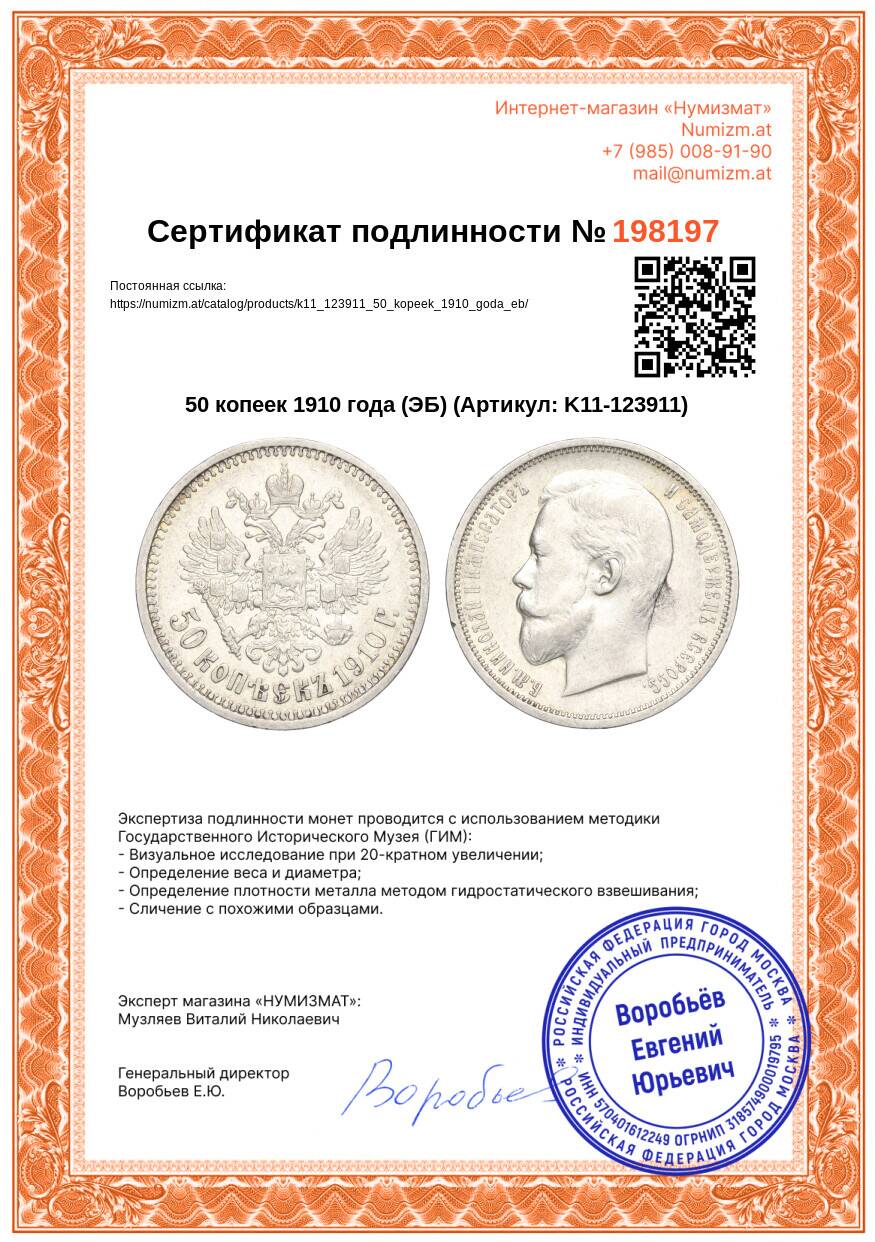 Купить 50 копеек 1910 года (ЭБ) по привлекательной цене можно в нашем интернет-магазине — Вам достаточно оформить заказ на сайте. Все монеты, представленные в каталоге, находятся в наличии на нашем складе.