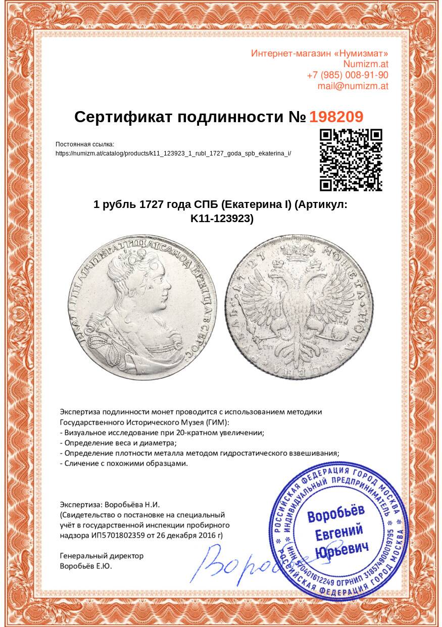 Купить 1 рубль 1727 года СПБ (Екатерина I) по привлекательной цене можно в нашем интернет-магазине — Вам достаточно оформить заказ на сайте. Все монеты, представленные в каталоге, находятся в наличии на нашем складе.