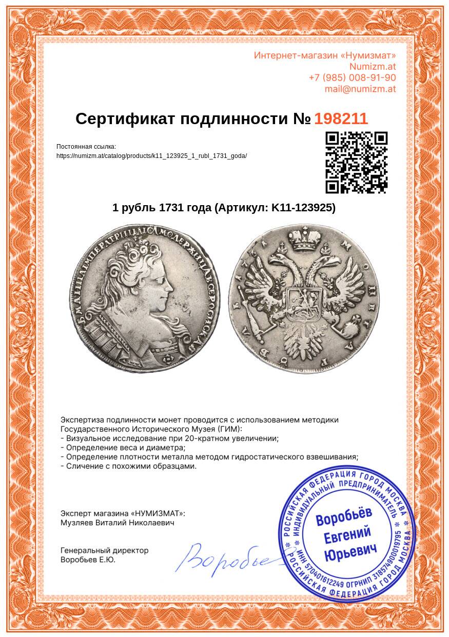 Купить 1 рубль 1731 года по привлекательной цене можно в нашем интернет-магазине — Вам достаточно оформить заказ на сайте. Все монеты, представленные в каталоге, находятся в наличии на нашем складе.