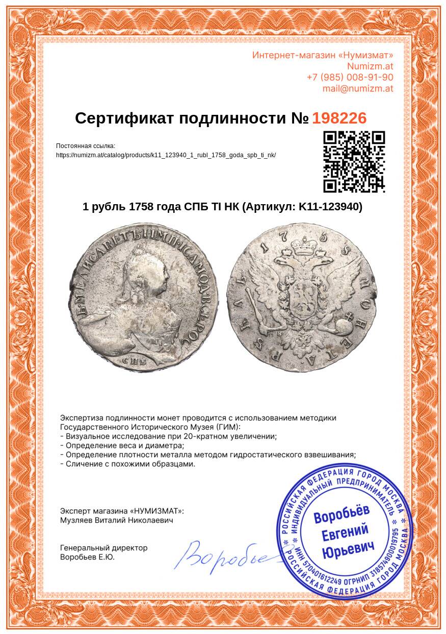 Купить 1 рубль 1758 года СПБ ТI НК по привлекательной цене можно в нашем интернет-магазине — Вам достаточно оформить заказ на сайте. Все монеты, представленные в каталоге, находятся в наличии на нашем складе.