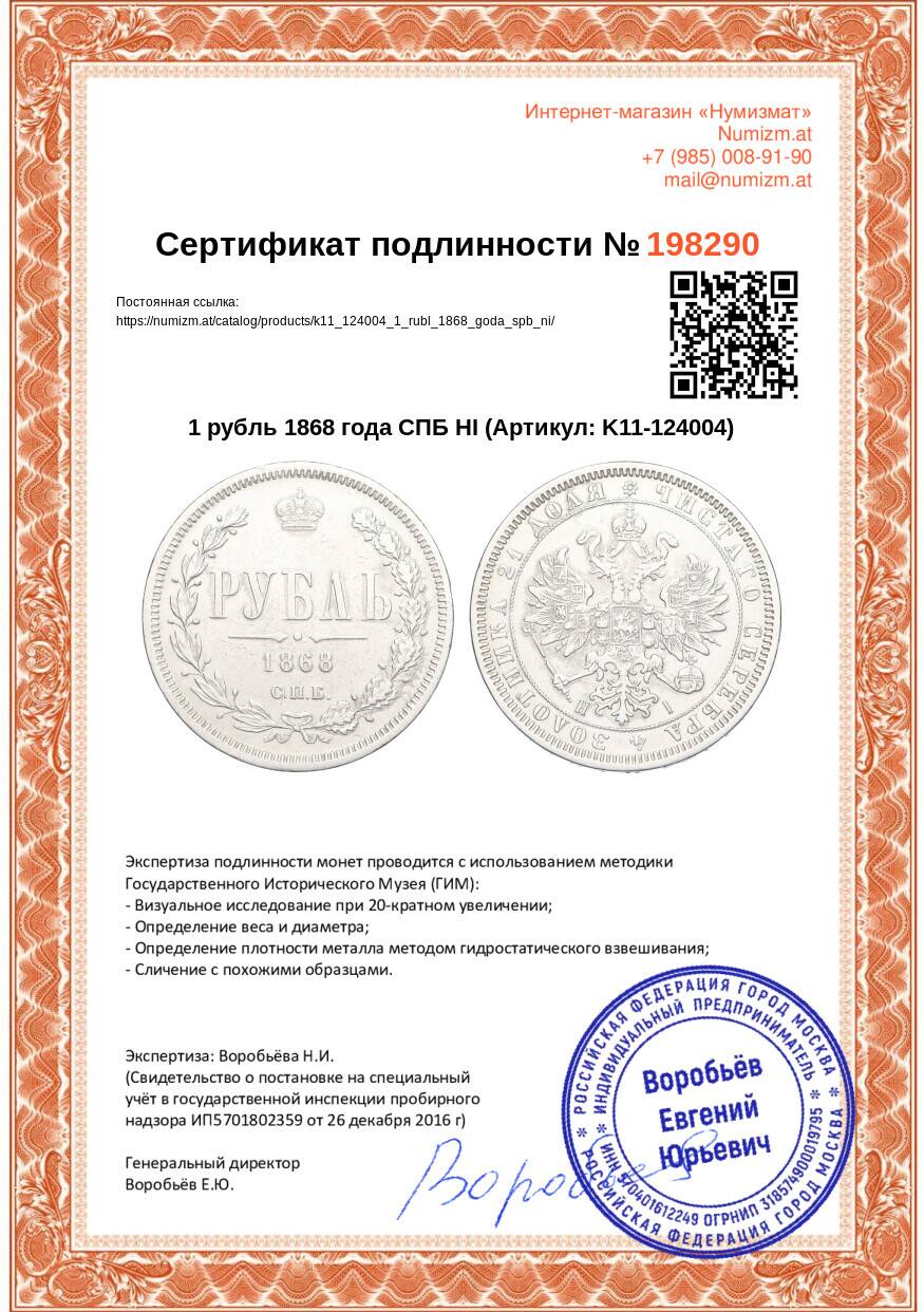 Купить 1 рубль 1868 года СПБ НI по привлекательной цене можно в нашем интернет-магазине — Вам достаточно оформить заказ на сайте. Все монеты, представленные в каталоге, находятся в наличии на нашем складе.