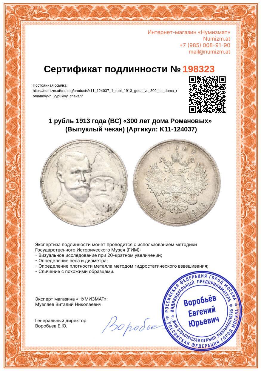 20.01.2025Интернет магазин «Нумизмат» предлагает приобрести 1 рубль 1913 года (ВС) «300 лет дома Романовых» (Выпуклый чекан).