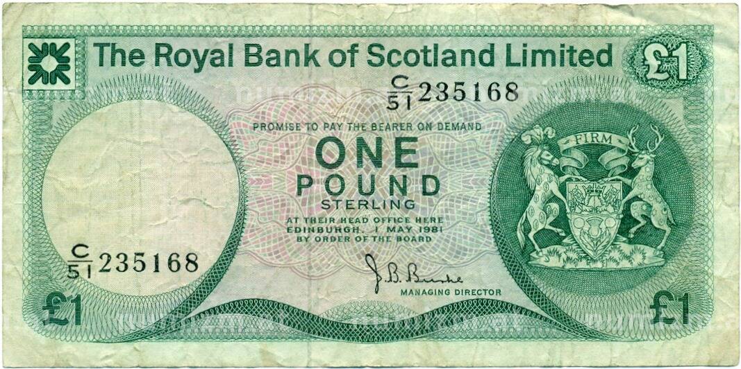 Банкнота 1 фунт стерлингов 1981 года Великобритания (Банк Шотландии) (Артикул: K11-124363): подробные характеристики, качественные фотографии в высоком разрешении, низкая цена.