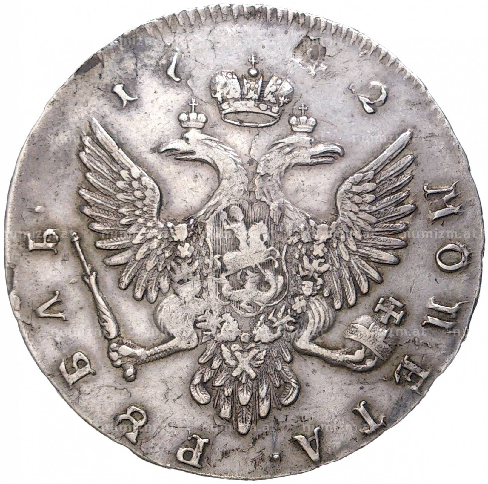 20.01.2025Интернет магазин «Нумизмат» предлагает приобрести 1 рубль 1742 года ММД.