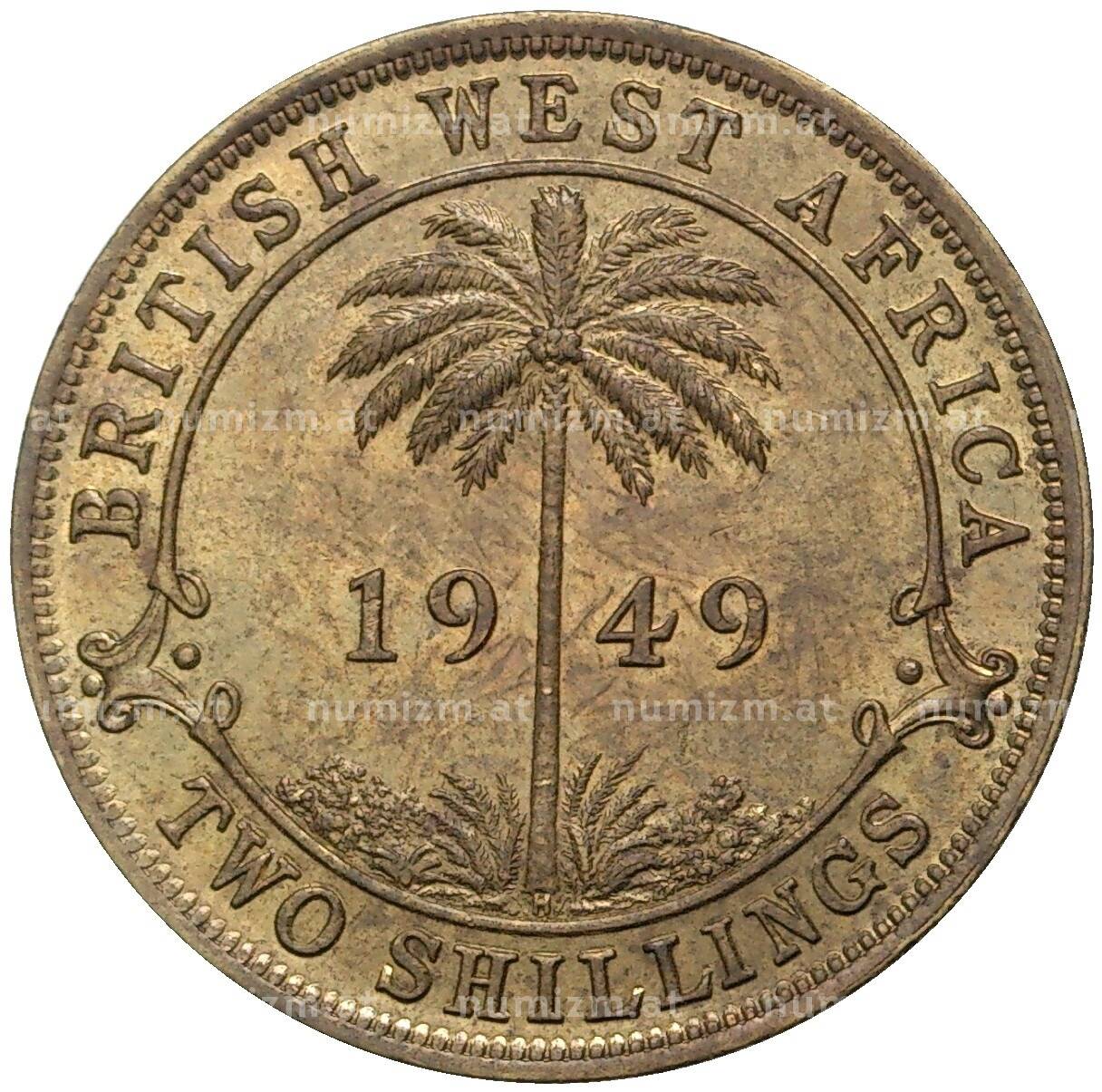 Интернет магазин «Нумизмат» предлагает приобрести 2 шиллинга 1949 года Н Британская Западная Африка.