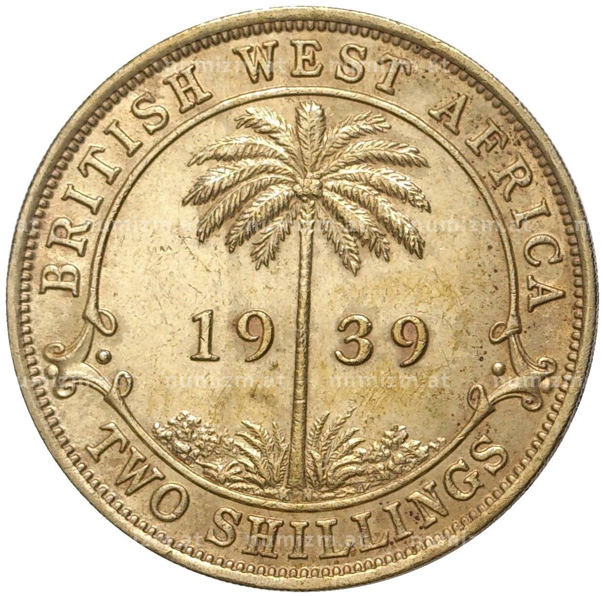Интернет магазин «Нумизмат» предлагает приобрести 2 шиллинга 1939 года KN Британская Западная Африка.