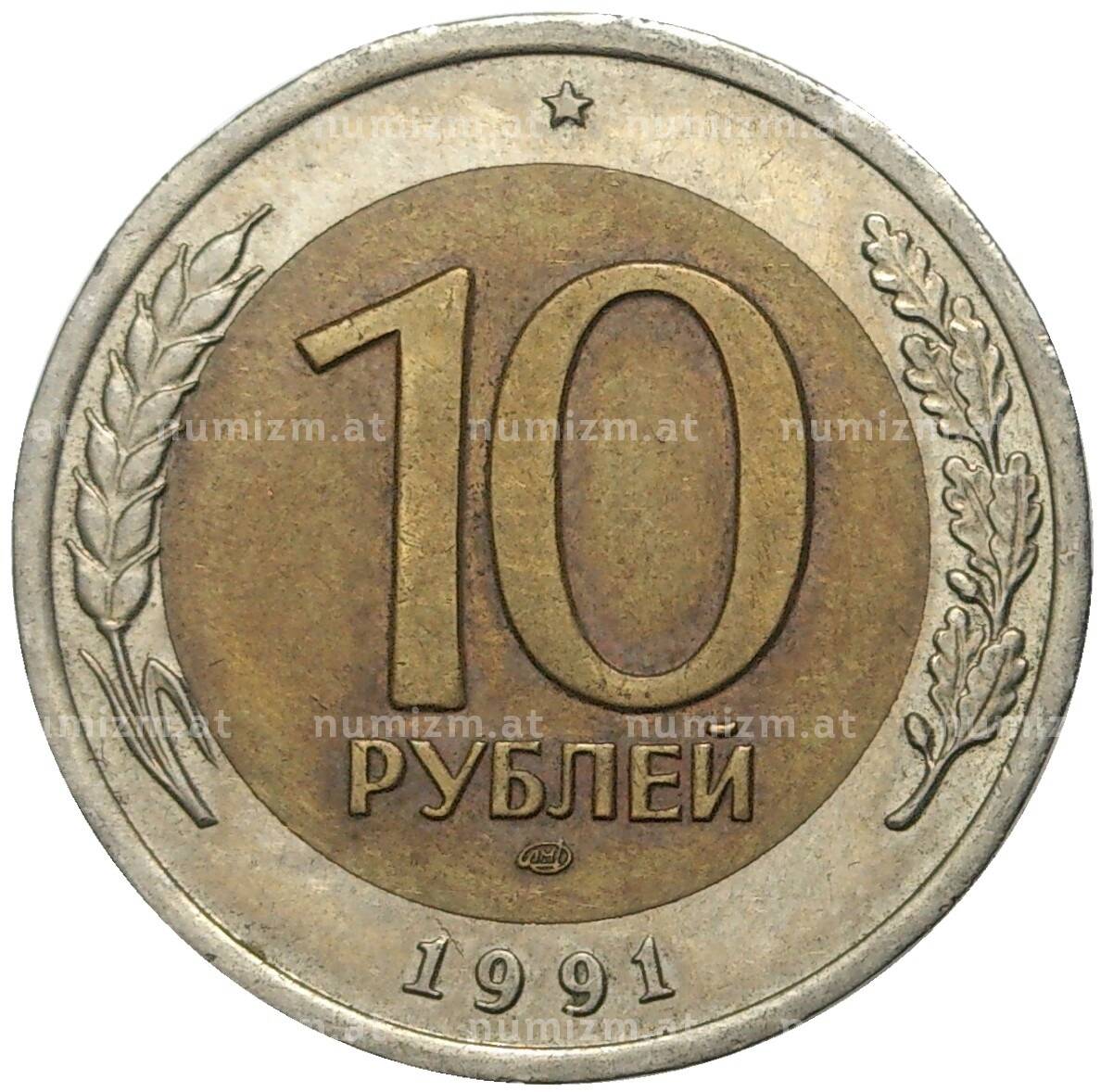 Интернет магазин «Нумизмат» предлагает приобрести 10 рублей 1991 года ЛМД (ГКЧП).