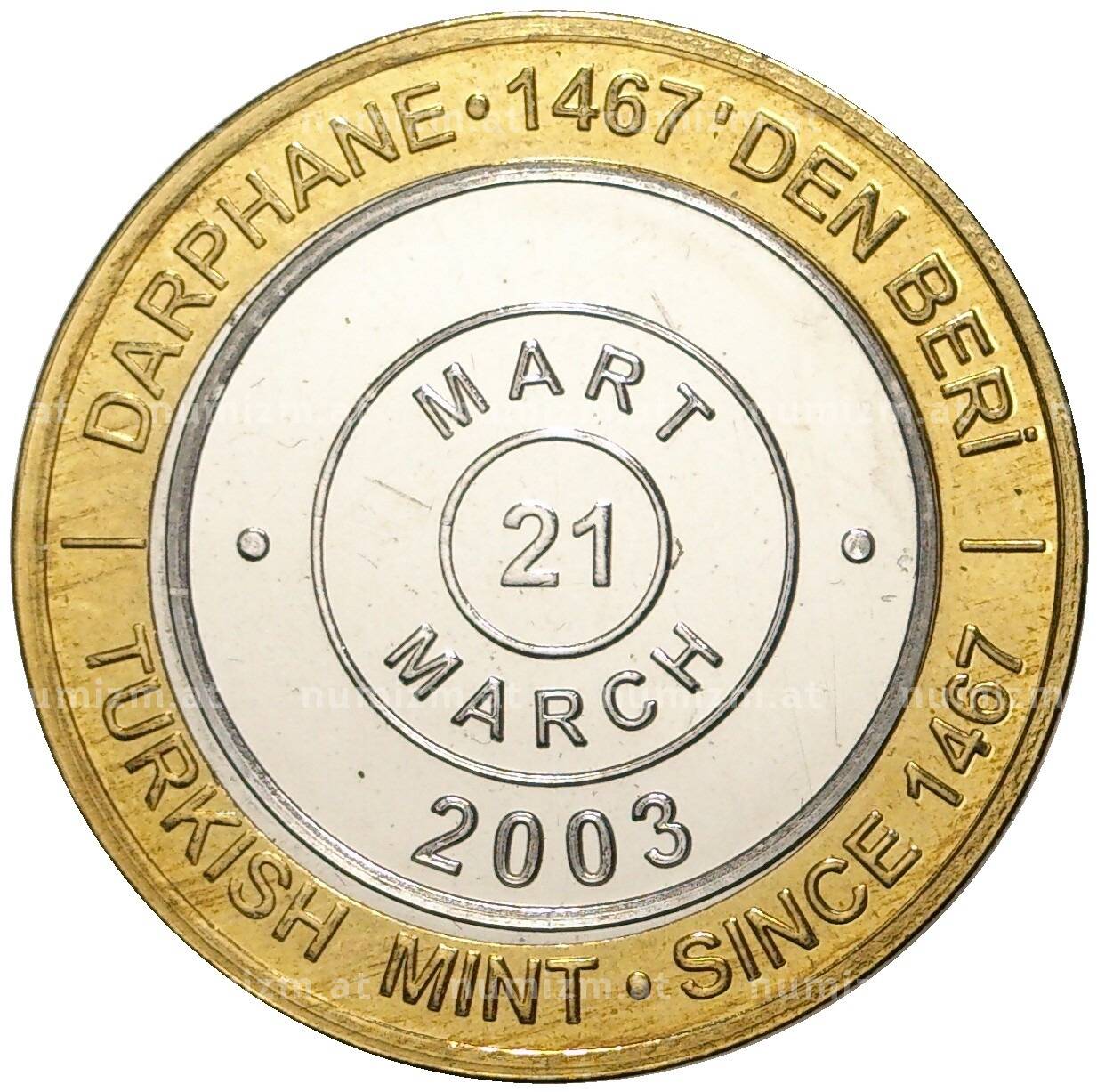 20.01.2025Интернет магазин «Нумизмат» предлагает приобрести 1 миллион лир 2003 года Турция «535 лет Стамбульскому монетному двору — 21 марта».