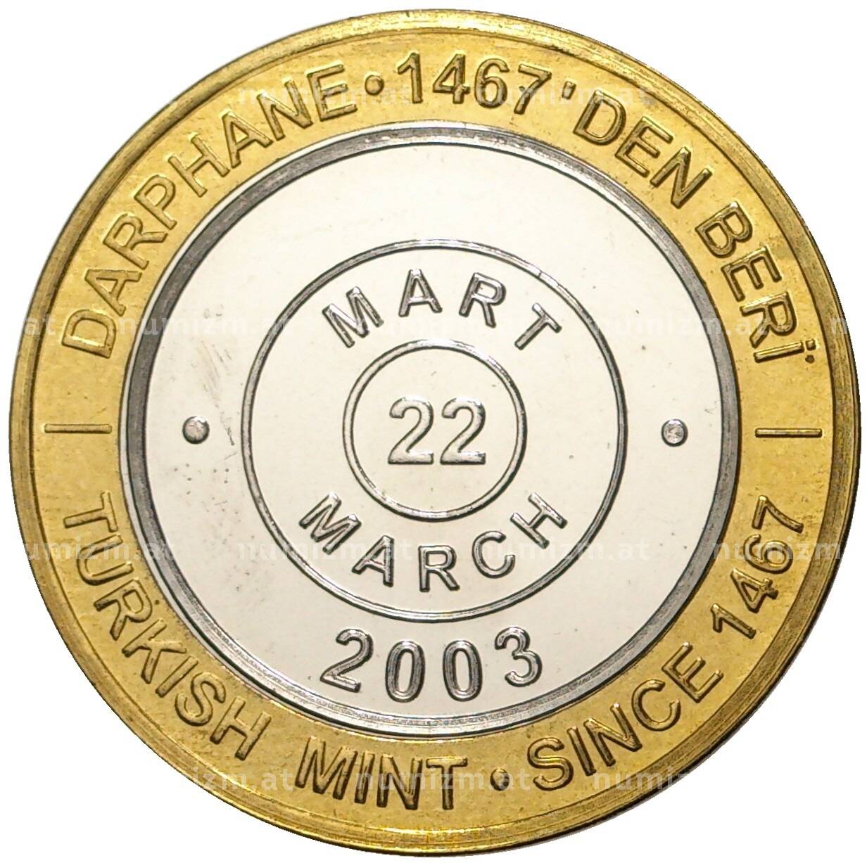 20.01.2025Интернет магазин «Нумизмат» предлагает приобрести 1 миллион лир 2003 года Турция «535 лет Стамбульскому монетному двору — 22 марта».