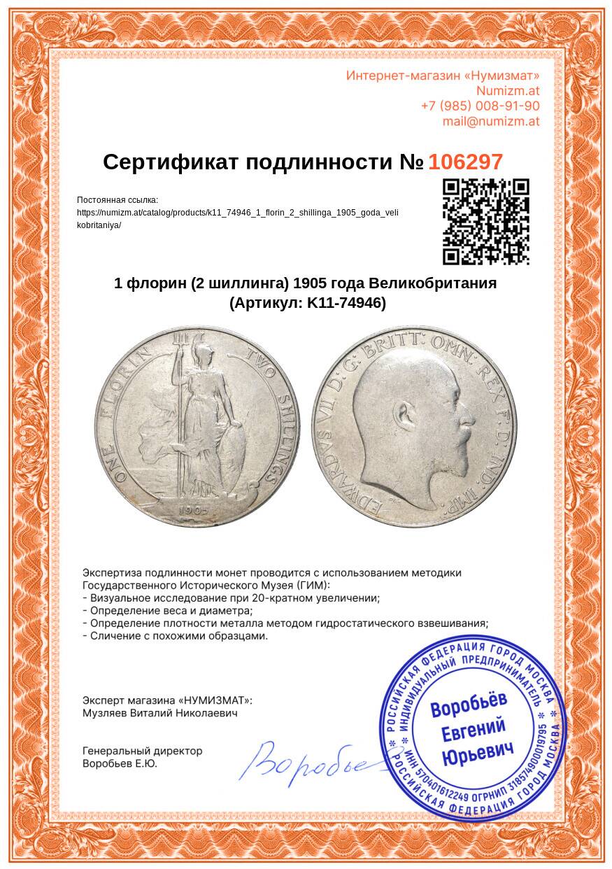 20.01.2025Интернет магазин «Нумизмат» предлагает приобрести 1 флорин (2 шиллинга) 1905 года Великобритания.