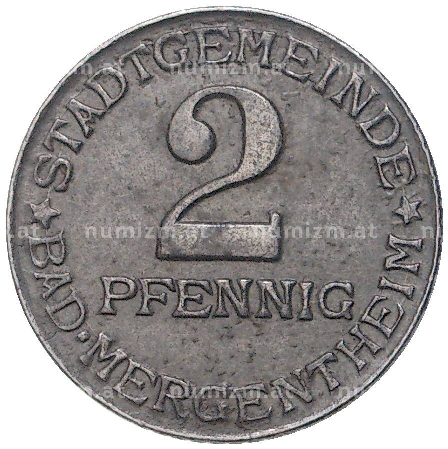 Монета 2 пфеннига 1920 года Германия — город Мергентхайм (Нотгельд) (Артикул: K11-78186): подробные характеристики, качественные фотографии в высоком разрешении, низкая цена.