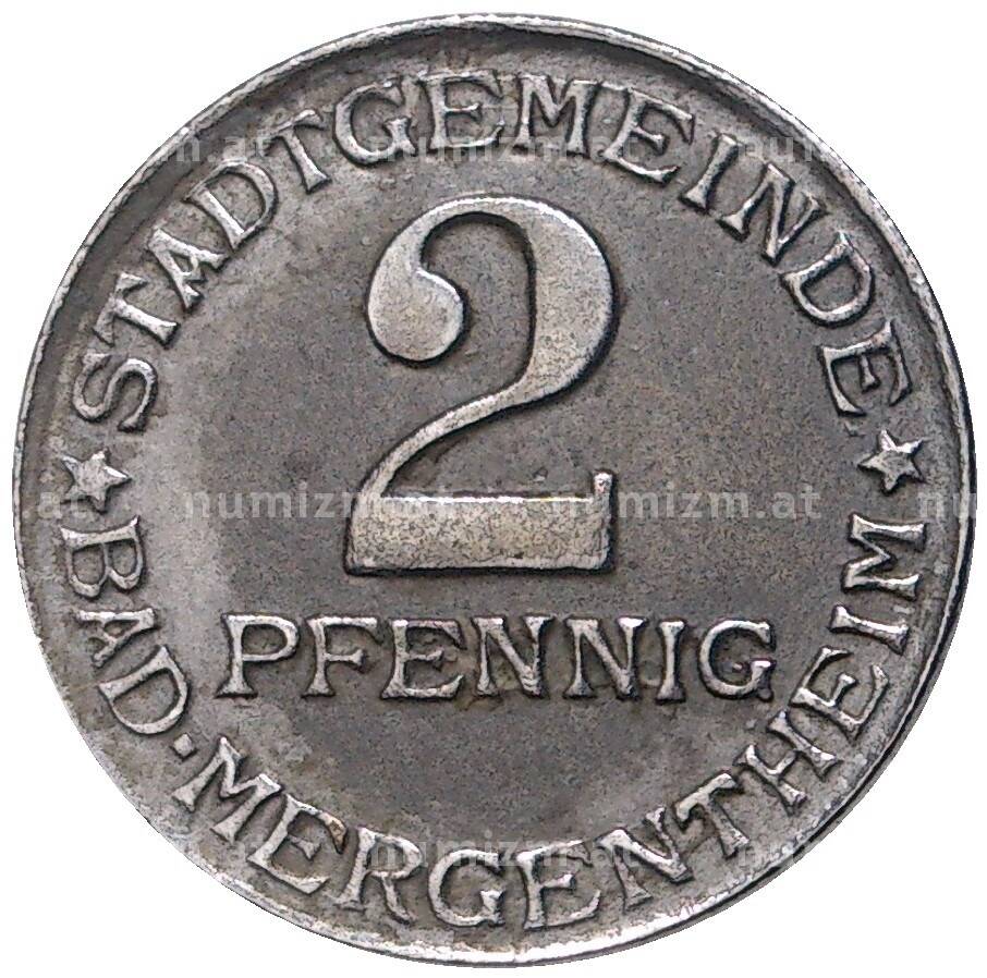 Монета 2 пфеннига 1920 года Германия — город Мергентхайм (Нотгельд) [Артикул: K11-78191]