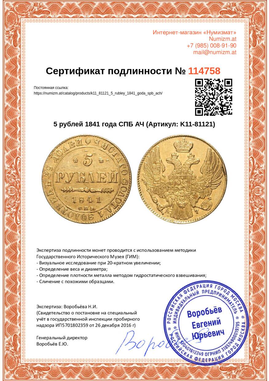 Купить 5 рублей 1841 года СПБ АЧ по привлекательной цене можно в нашем интернет-магазине — Вам достаточно оформить заказ на сайте. Все монеты, представленные в каталоге, находятся в наличии на нашем складе.