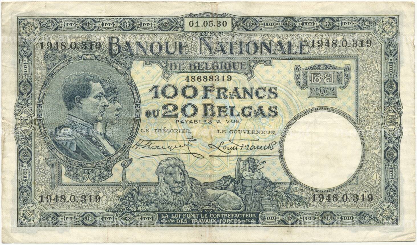 20.01.2025Интернет магазин «Нумизмат» предлагает приобрести 100 франков 1930 года Бельгия.