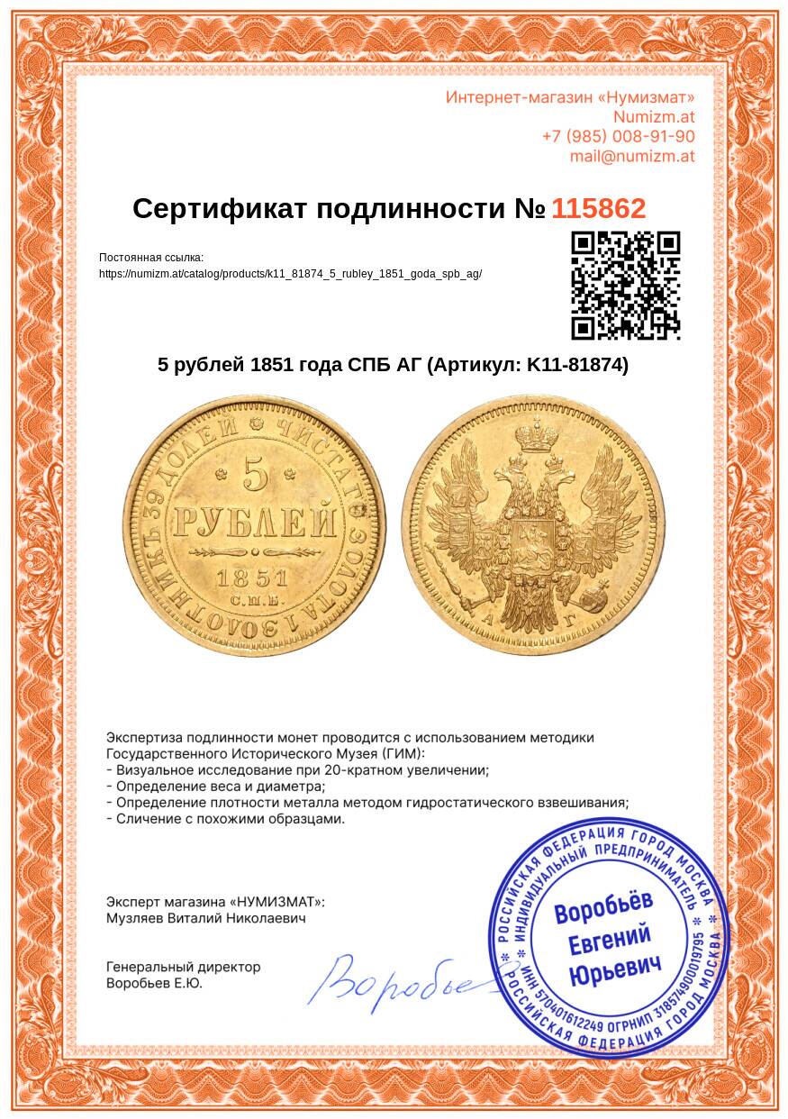 Купить 5 рублей 1851 года СПБ АГ по привлекательной цене можно в нашем интернет-магазине — Вам достаточно оформить заказ на сайте. Все монеты, представленные в каталоге, находятся в наличии на нашем складе.