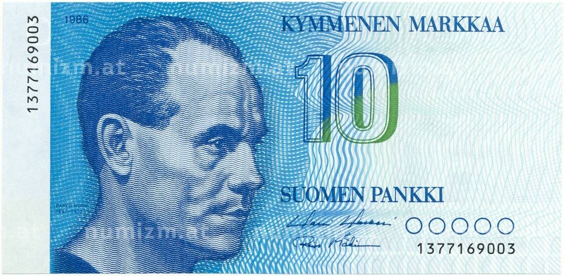 Банкнота 10 марок 1986 года Финляндия (Артикул: K11-83201): подробные характеристики, качественные фотографии в высоком разрешении, низкая цена.