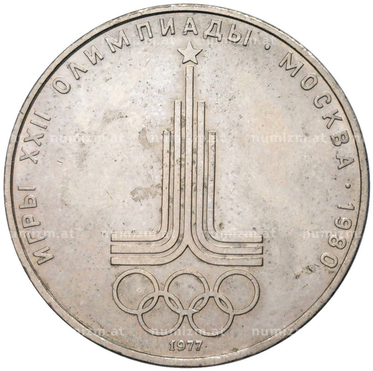 Купить 1 рубль 1977 года «XXII летние Олимпийские Игры 1980 в Москве (Олимпиада-80) — Эмблема» по привлекательной цене можно в нашем интернет-магазине — Вам достаточно оформить заказ на сайте. Все монеты, представленные в каталоге, находятся в наличии на нашем складе.