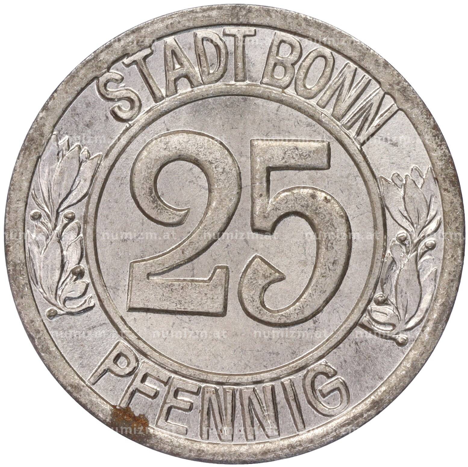 Монета 25 пфеннигов 1920 года Германия — город Бонн «Бетховен» (Нотгельд) (Артикул: K11-86293): подробные характеристики, качественные фотографии в высоком разрешении, низкая цена.