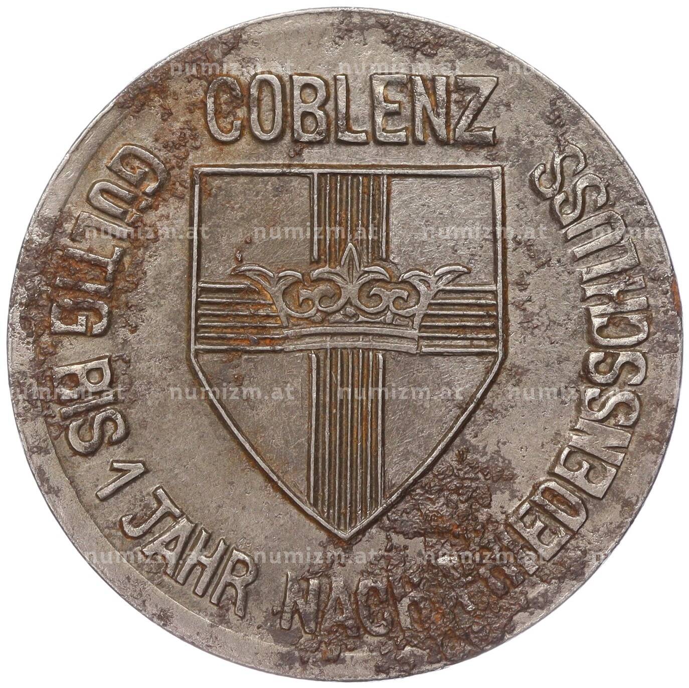 Купить 10 пфеннигов 1918 года Германия — город Кобленц (Нотгельд) по привлекательной цене можно в нашем интернет-магазине — Вам достаточно оформить заказ на сайте. Все монеты, представленные в каталоге, находятся в наличии на нашем складе.