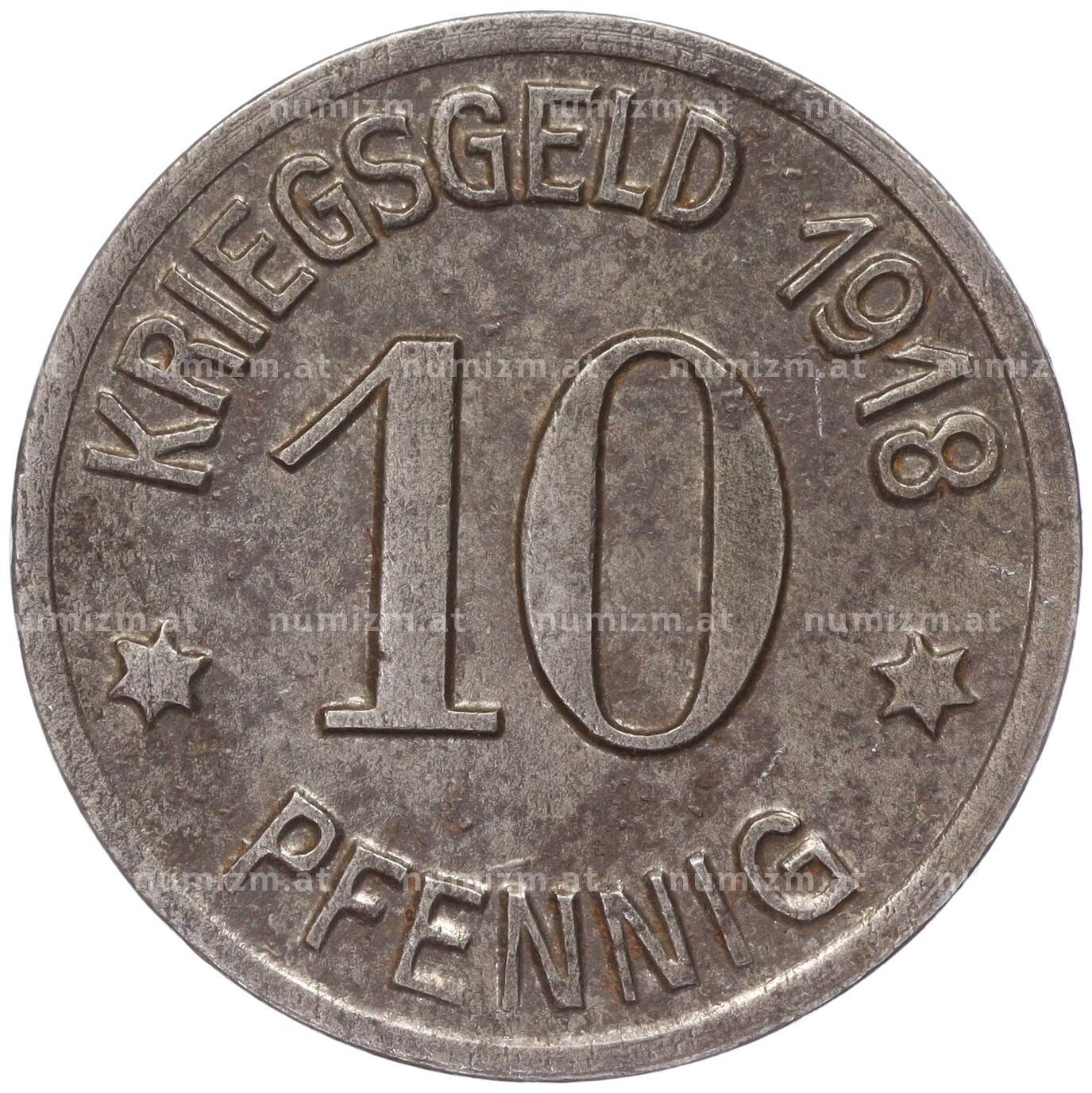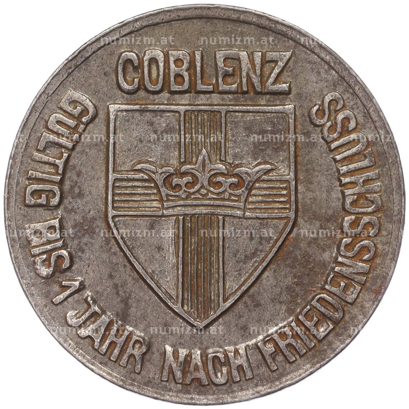 Монета 10 пфеннигов 1918 года Германия — город Кобленц (Нотгельд) (Артикул: K11-86400): подробные характеристики, качественные фотографии в высоком разрешении, низкая цена.