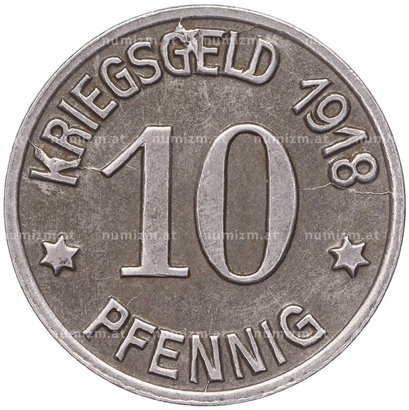 Монета 10 пфеннигов 1918 года Германия — город Кобленц (Нотгельд) (Артикул: K11-86407): подробные характеристики, качественные фотографии в высоком разрешении, низкая цена.