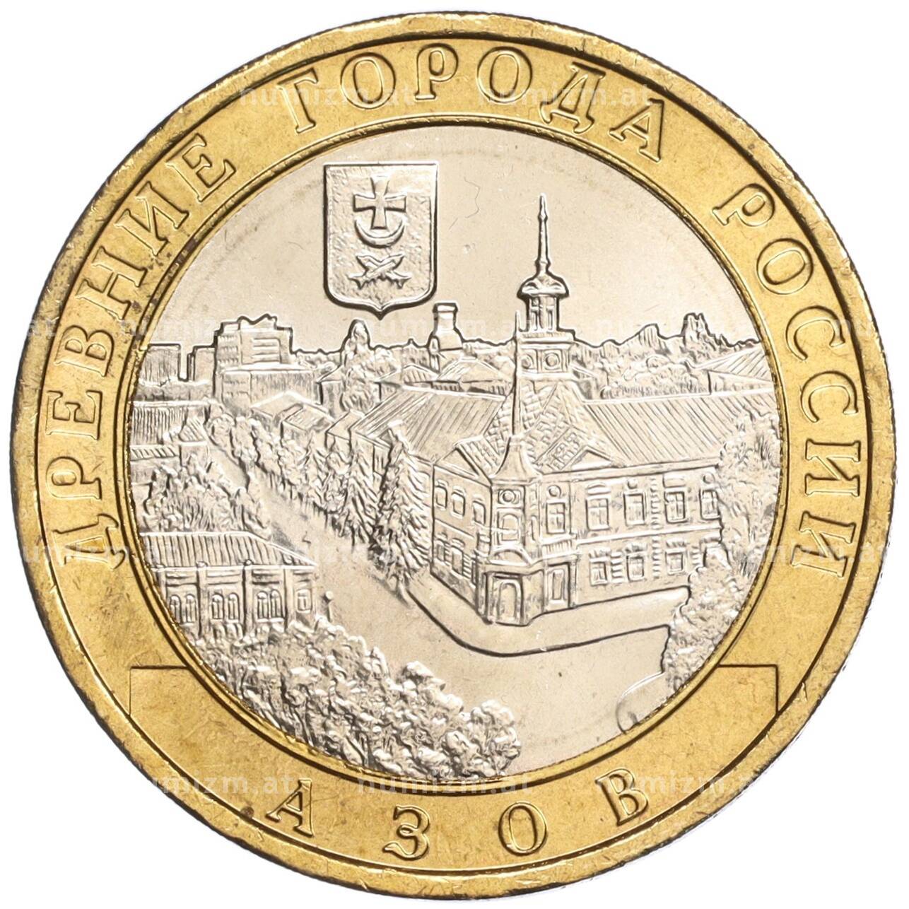 Интернет магазин «Нумизмат» предлагает приобрести 10 рублей 2008 года ММД «Древние города России — Азов».