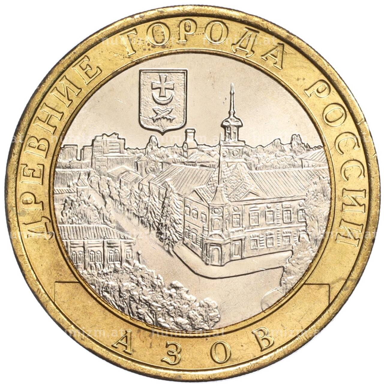 Интернет магазин «Нумизмат» предлагает приобрести 10 рублей 2008 года ММД «Древние города России — Азов».