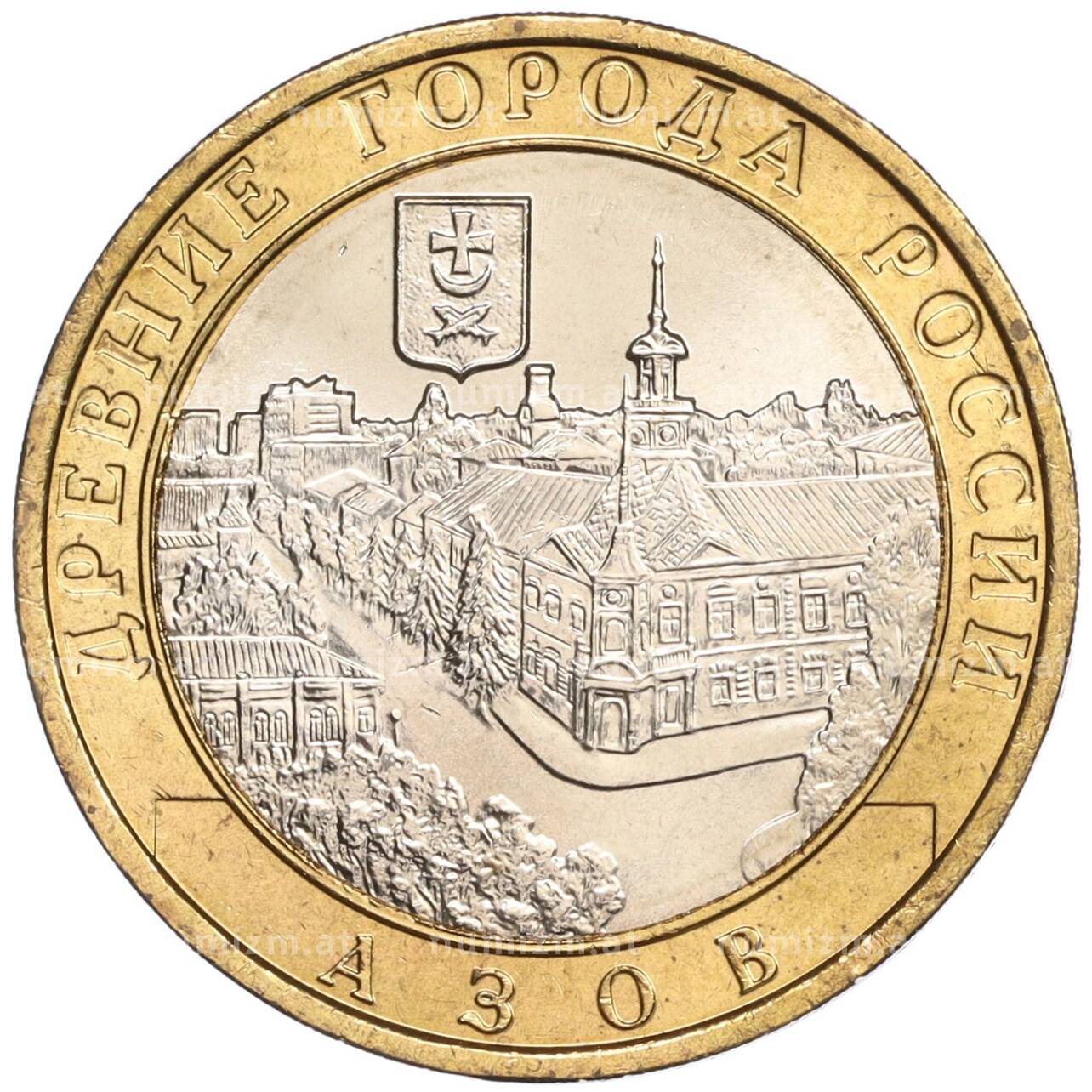 Интернет магазин «Нумизмат» предлагает приобрести 10 рублей 2008 года ММД «Древние города России — Азов».
