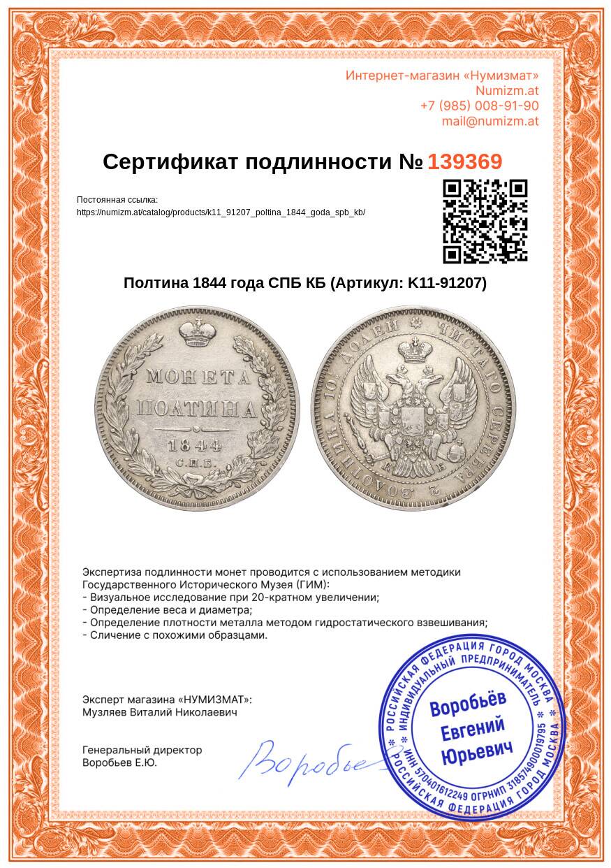 Купить Полтина 1844 года СПБ КБ по привлекательной цене можно в нашем интернет-магазине — Вам достаточно оформить заказ на сайте. Все монеты, представленные в каталоге, находятся в наличии на нашем складе.