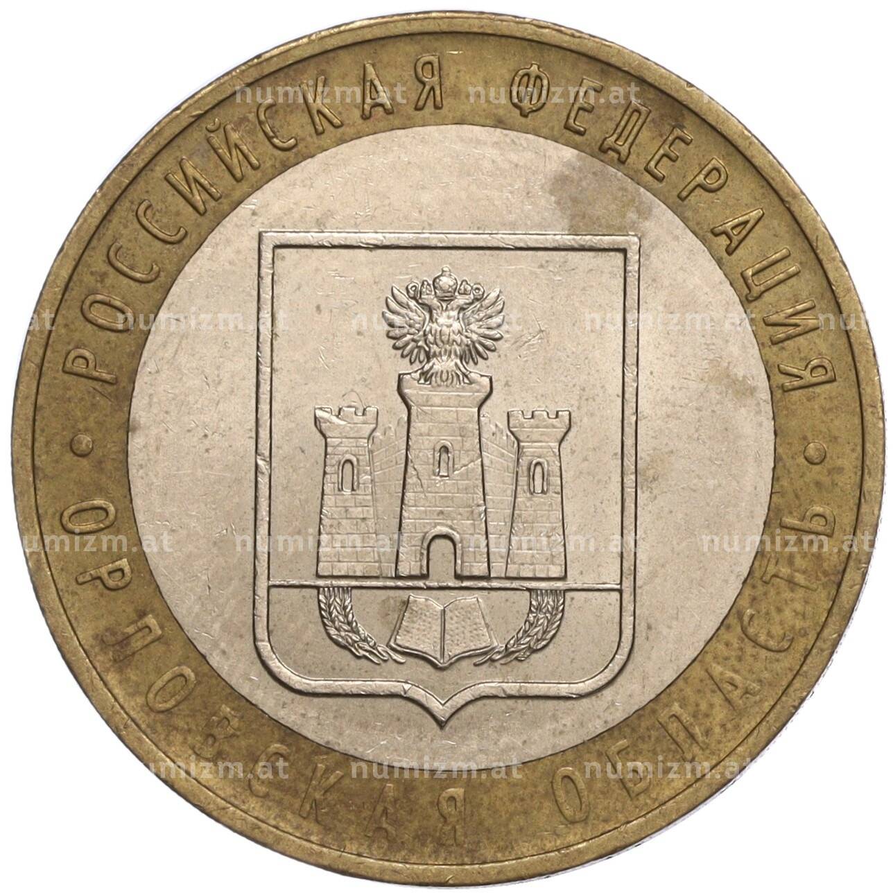 Купить 10 рублей 2005 года ММД «Российская Федерация — Орловская область» по привлекательной цене можно в нашем интернет-магазине — Вам достаточно оформить заказ на сайте. Все монеты, представленные в каталоге, находятся в наличии на нашем складе.