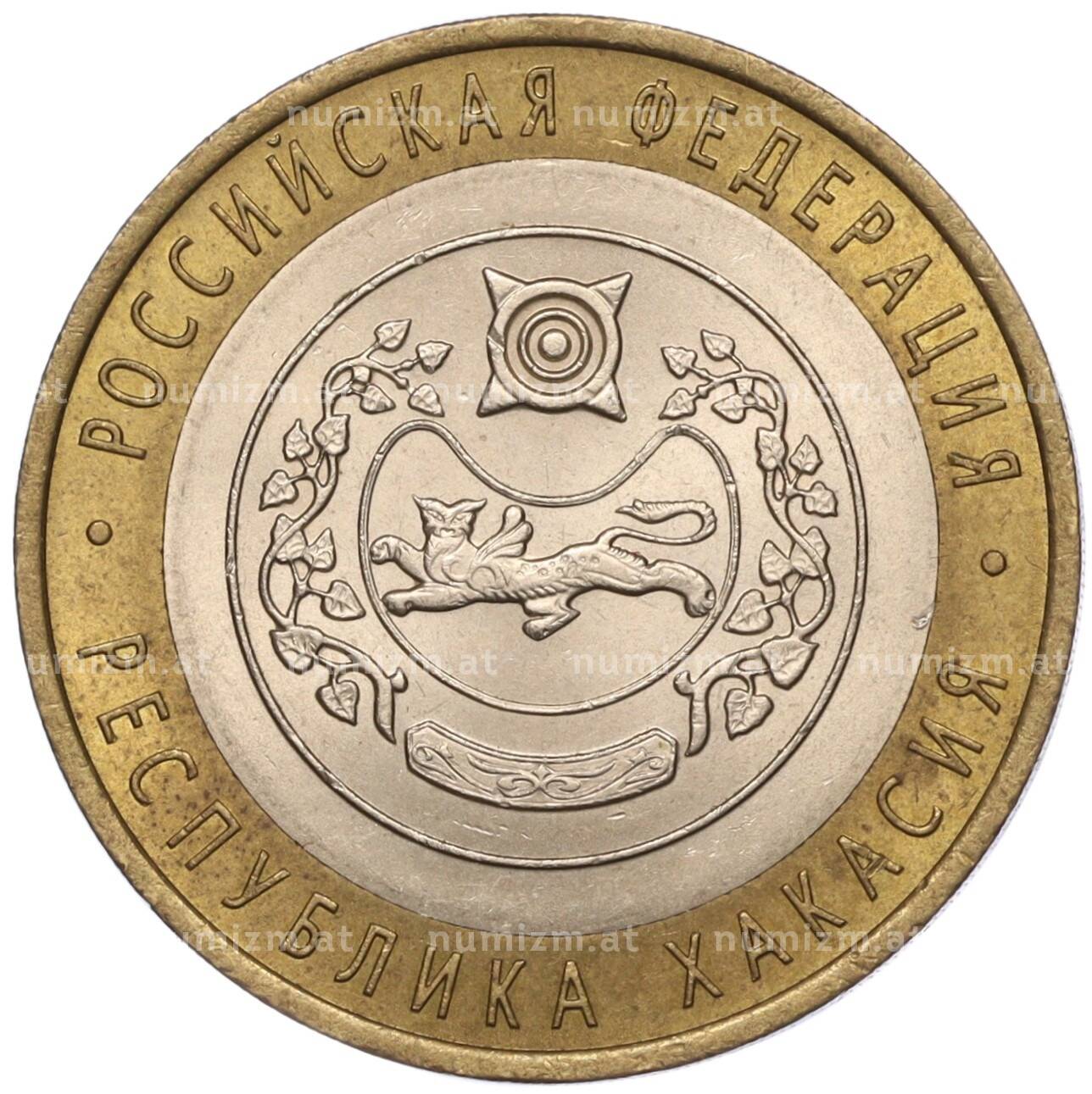 Интернет магазин «Нумизмат» предлагает приобрести 10 рублей 2007 года СПМД «Российская Федерация — Республика Хакасия».
