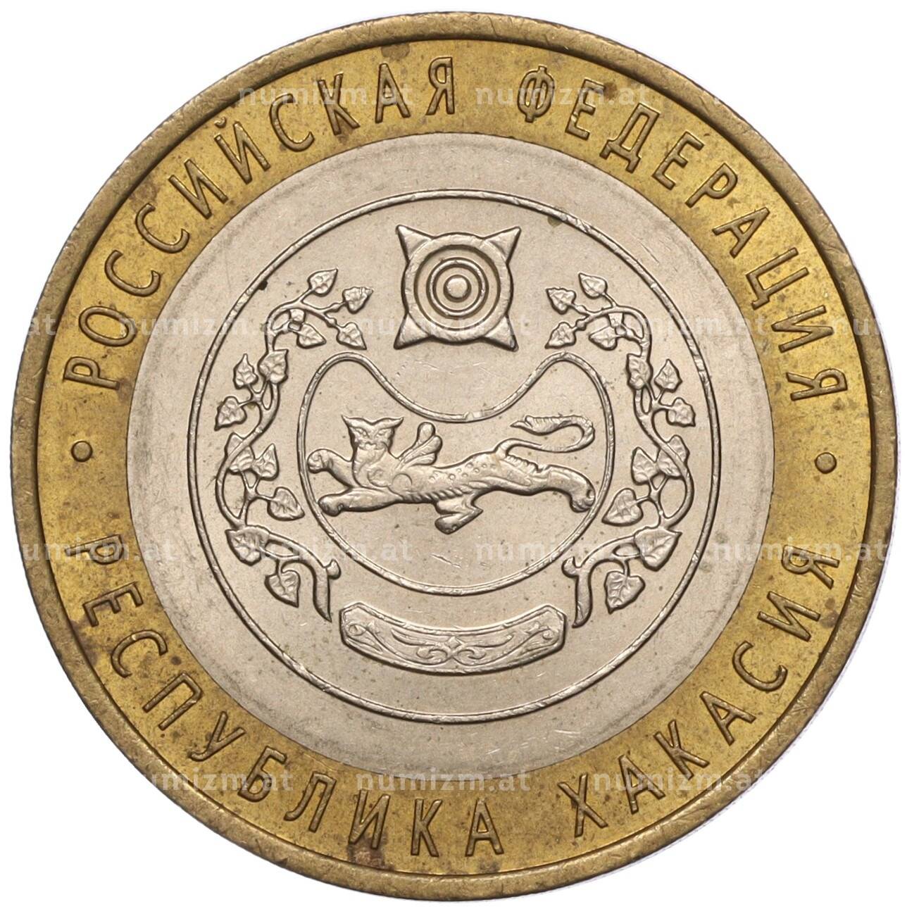 Интернет магазин «Нумизмат» предлагает приобрести 10 рублей 2007 года СПМД «Российская Федерация — Республика Хакасия».