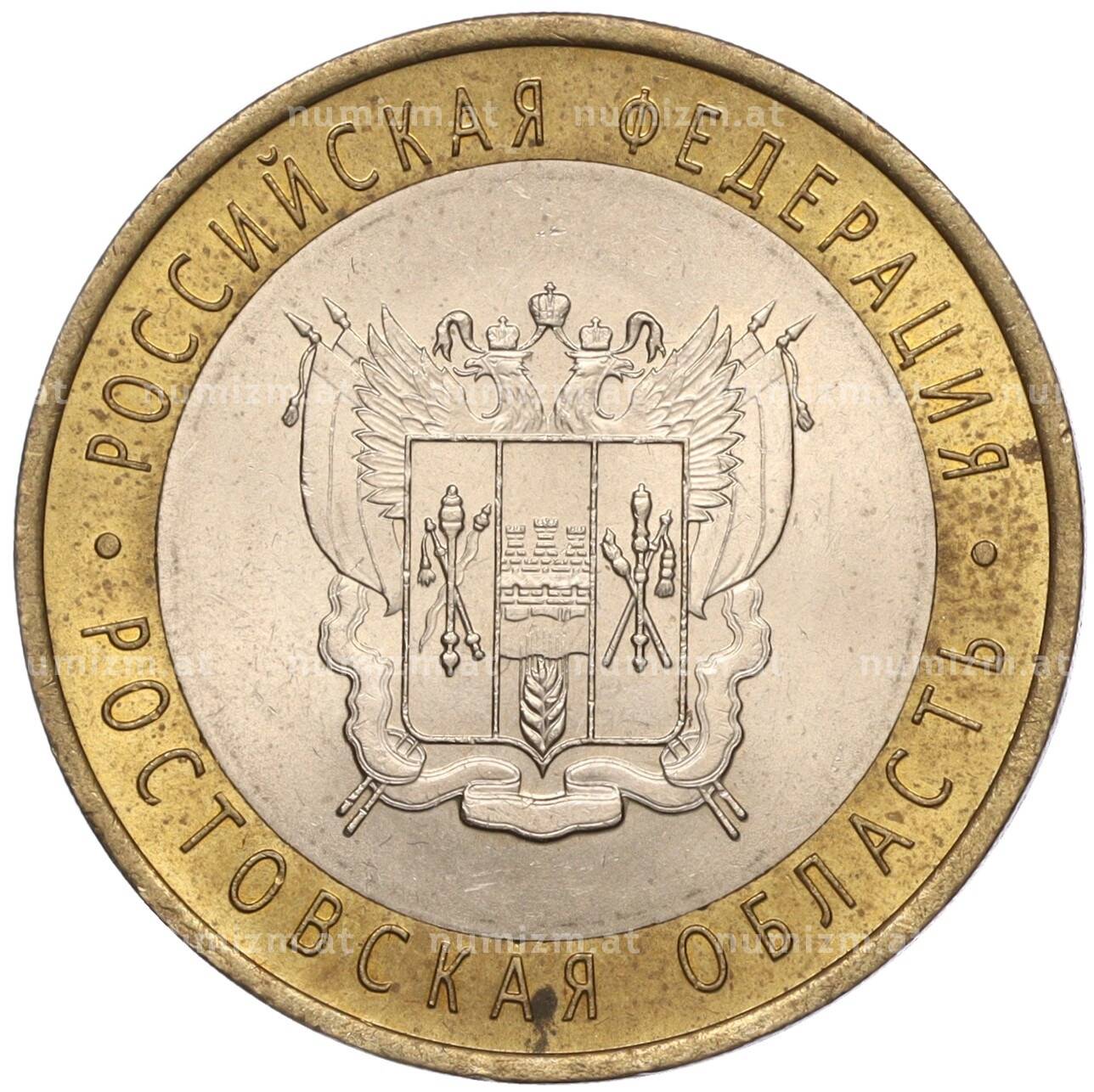 Интернет магазин «Нумизмат» предлагает приобрести 10 рублей 2007 года СПМД «Российская Федерация — Ростовская область».