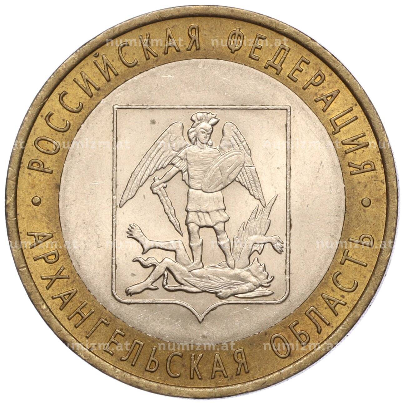 Интернет магазин «Нумизмат» предлагает приобрести 10 рублей 2007 года СПМД «Российская Федерация — Архангельская область».
