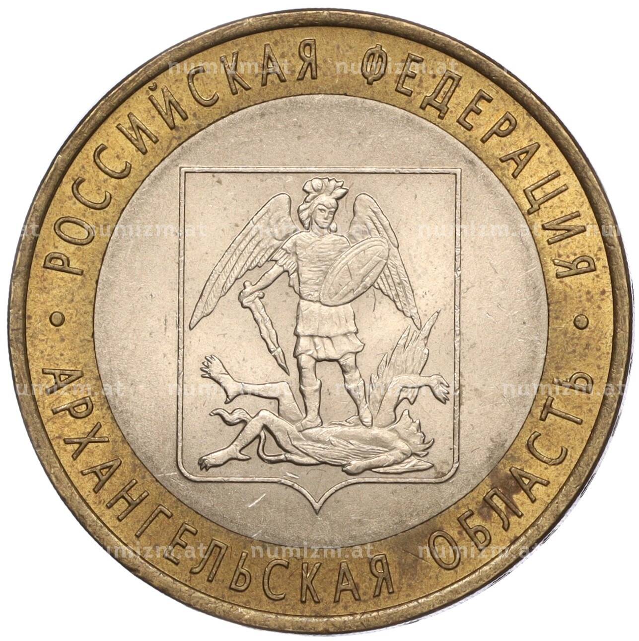 Интернет магазин «Нумизмат» предлагает приобрести 10 рублей 2007 года СПМД «Российская Федерация — Архангельская область».