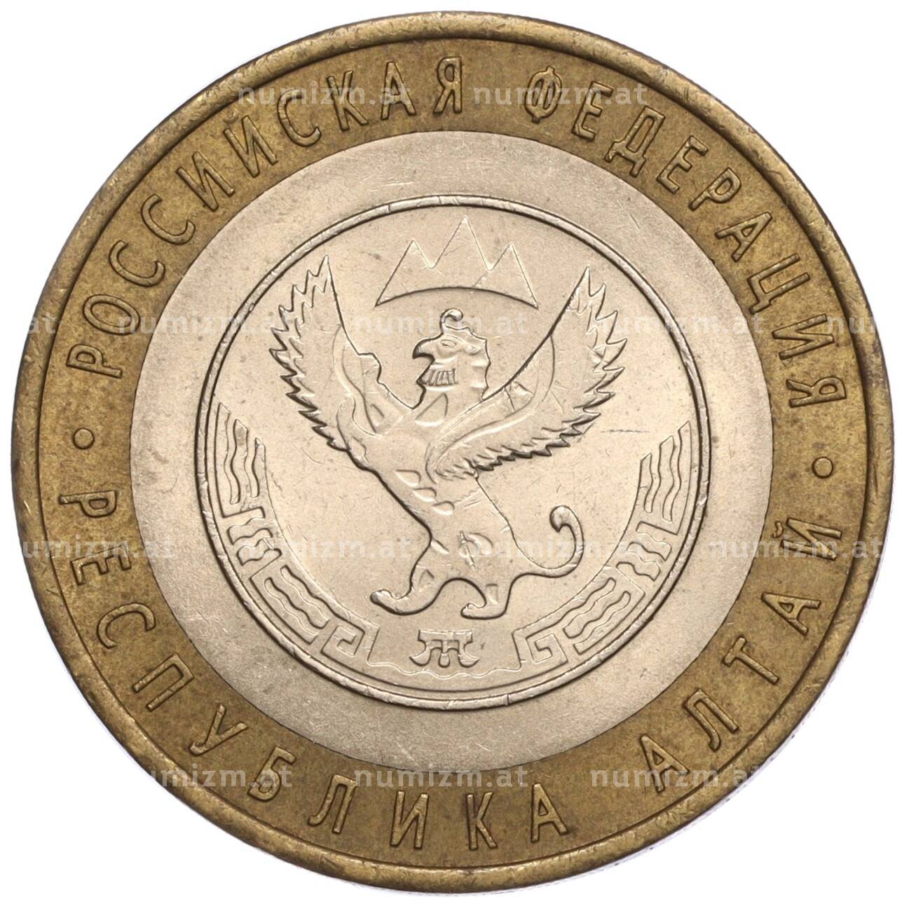 Купить 10 рублей 2006 года СПМД «Российская Федерация — Республика Алтай» по привлекательной цене можно в нашем интернет-магазине — Вам достаточно оформить заказ на сайте. Все монеты, представленные в каталоге, находятся в наличии на нашем складе.