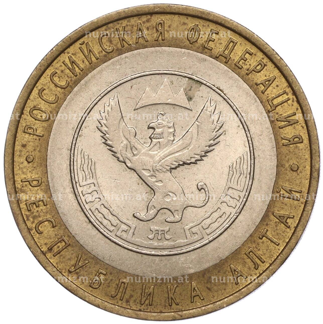 Купить 10 рублей 2006 года СПМД «Российская Федерация — Республика Алтай» по привлекательной цене можно в нашем интернет-магазине — Вам достаточно оформить заказ на сайте. Все монеты, представленные в каталоге, находятся в наличии на нашем складе.