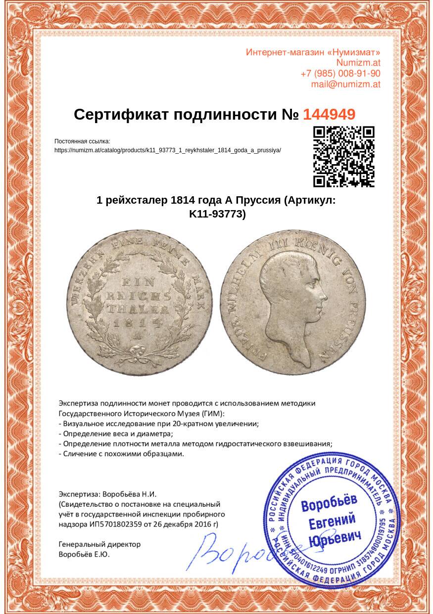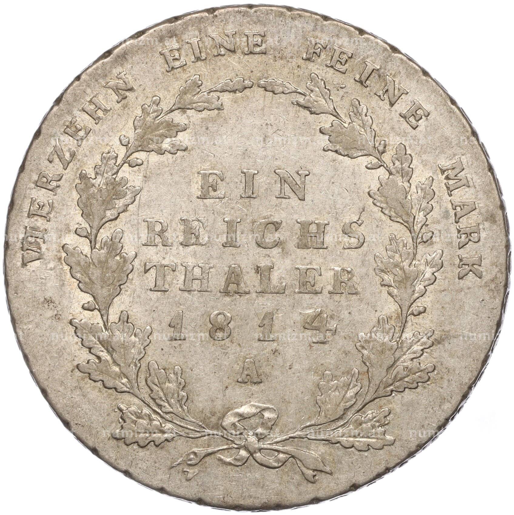 Купить 1 рейхсталер 1814 года А Пруссия по привлекательной цене можно в нашем интернет-магазине — Вам достаточно оформить заказ на сайте. Все монеты, представленные в каталоге, находятся в наличии на нашем складе.